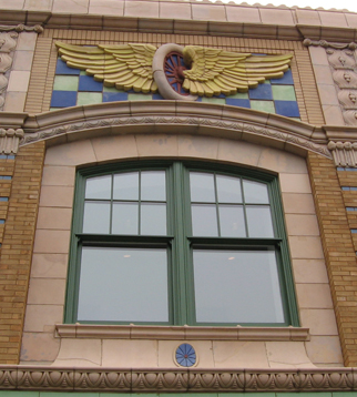 The Center on Halstead serves as a comprehensive gathering place for Chicago’s LGBT citizens. Seventy-five percent of the building facade is glass, designed to create a sense of open community. The city offered a former municipal garage as a space for development. The garage, built in 1924, featured a polychrome terracotta facade with a winged wheel motif. Preservation efforts would save the terracotta, and earn the green building credits towards a silver LEED rating. The terracotta tiles were catalogued and numbered, taken apart, then housed and restored offsite. MIMIC TR was used on tiles requiring only thin coating repairs, while Matrix (which is colored matched on-site) was used to rebuild missing pieces. The tiles were restored to their original bright colors using M3P mineral silicate paint. M3P is a water based, low VOC coating, offering long term protection from water and contaminants while remaining environmentally friendly. Unlike most coatings, M3P reacts with the substrate, changing its color without changing its character.